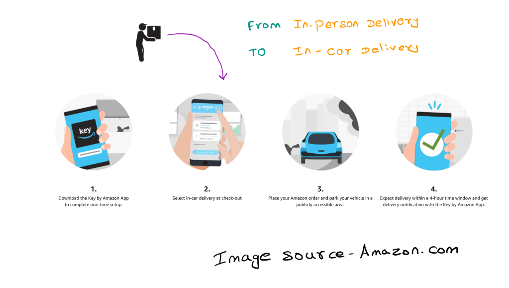 Next, let us talk about adopting some new technologies whenever and wherever possible to maintain social distancing. Amazon introduced In-home delivery in 2017 to deal with situations of items being lost when it is delivered in front of the doors at the customer’s delivery address. Understandably, there was both positive and negative feedback with this mode of delivery. However, Amazon promised the security of the home. A year later, Amazon also introduced In-Car delivery to even remove the negative feedback over In-home delivery. There are increasing concerns and confusion around how long and in what surfaces can the virus survive. Even though I could not find enough statistical data to understand the success of In-car delivery, it comes in handy for practicing social distancing.