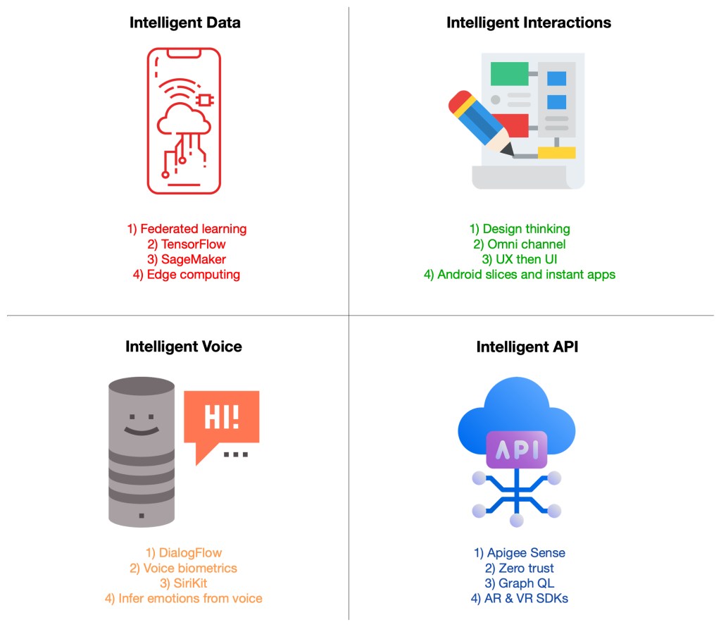 Broadly speaking, intelligent interactions occur when an app completes a task without users having to tap or click their way through a command resulting in a streamlined experience. There is a huge market opportunity to migrate from the legacy ‘touch-and-navigate’ user experience to the modern ‘converse, interact and accomplish’ paradigm.