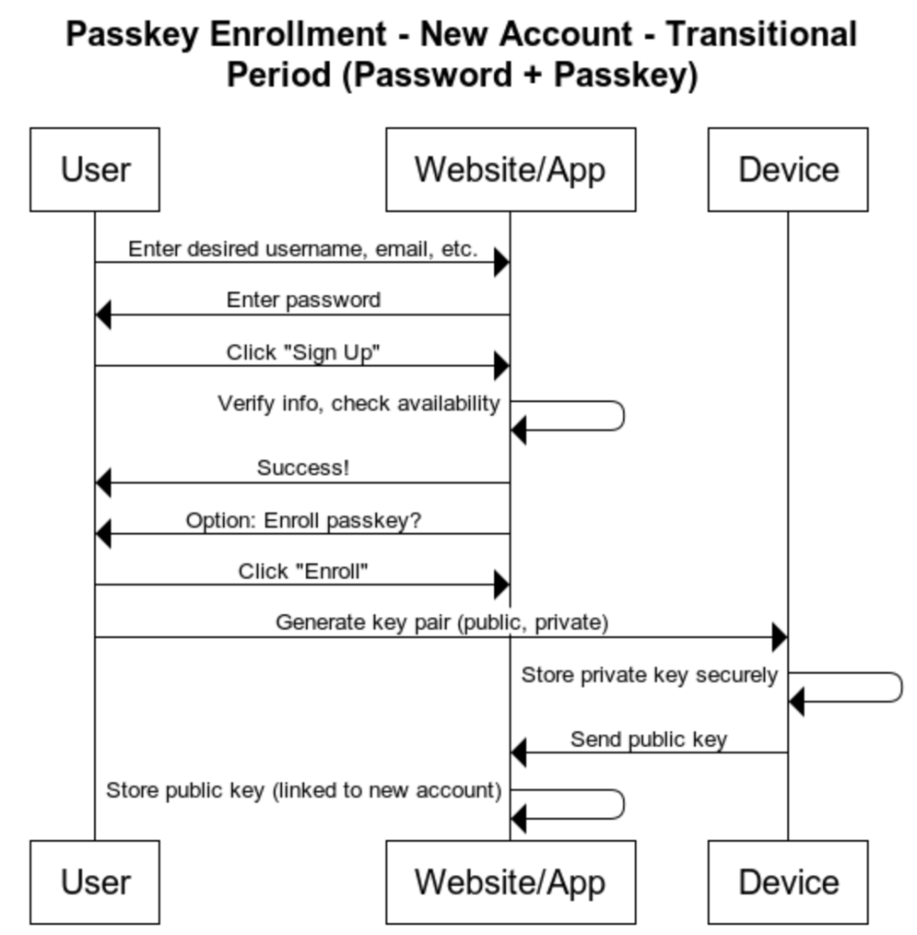 - Fallback Authentication: Passkeys are relatively new. If something goes wrong during the setup, or you lose access to your device before enrolling a passkey, you need a way to recover your account. The initial password acts as a backup.