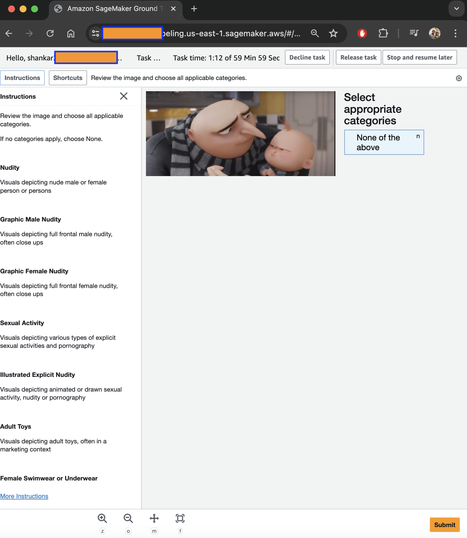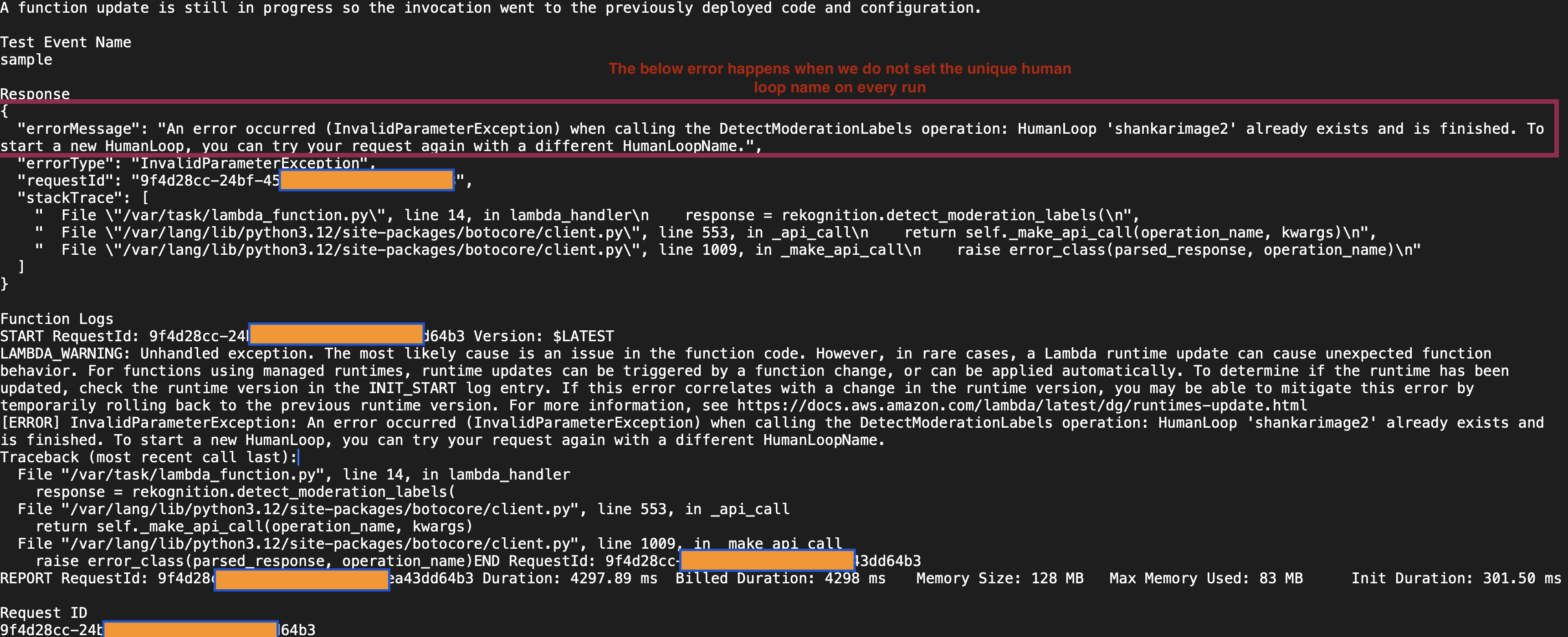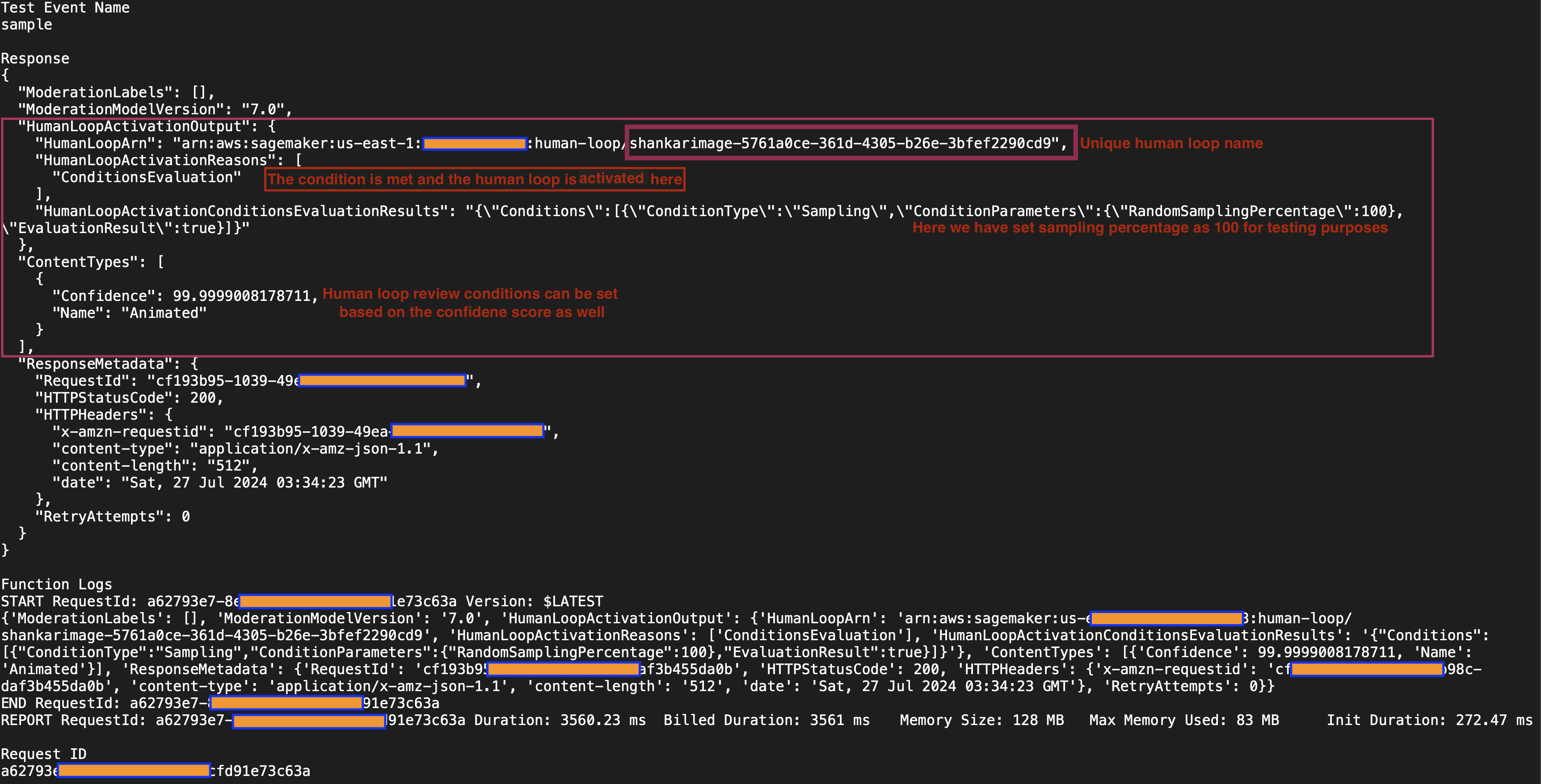 'FlowDefinitionArn': 'arn:aws:sagemaker:us-east-1:<YOUR_ACCOUNT_ID>:flow-definition/<YOUR_REKOGNITION_FLOW_DEFINITION_NAME>'