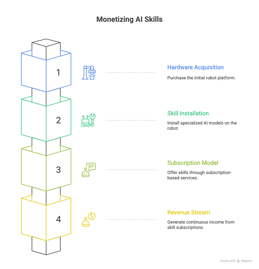 This transformative technology creates a powerful new business model. The cost of a humanoid or autonomous robot platform (the hardware) is a one-time transaction. The real value is unlocked through specific, advanced physical skills, which can be monetized via subscription-based models.