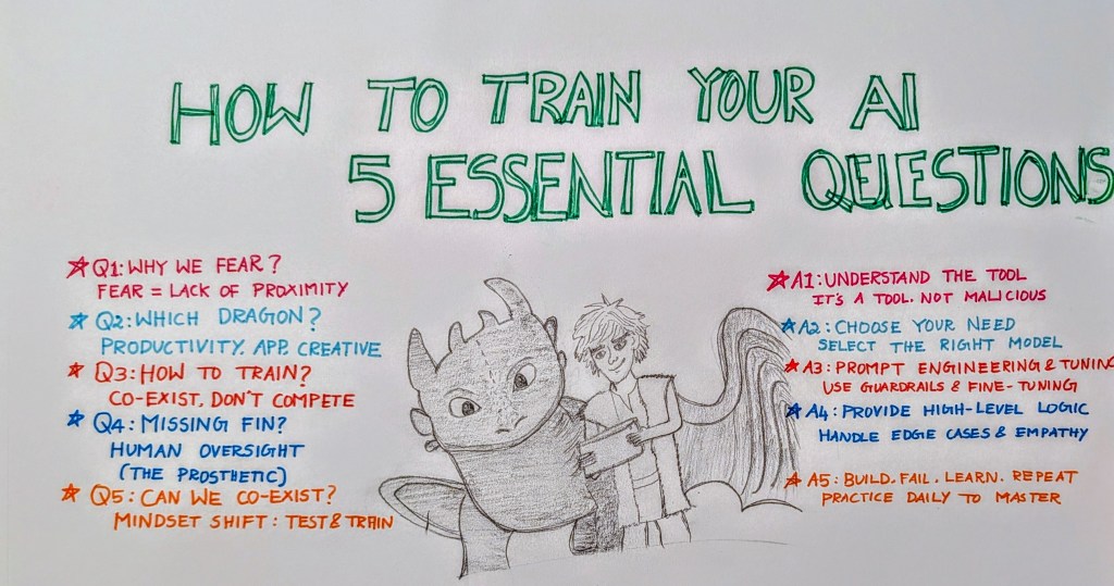 Training is about co-existing. It’s about learning the cheat sheet, the guardrails. Just as Hiccup used a specific touch to calm a dragon, we use prompt engineering and fine-tuning to guide AI. You are the master of your own AI needs. The tool only goes where you steer it.